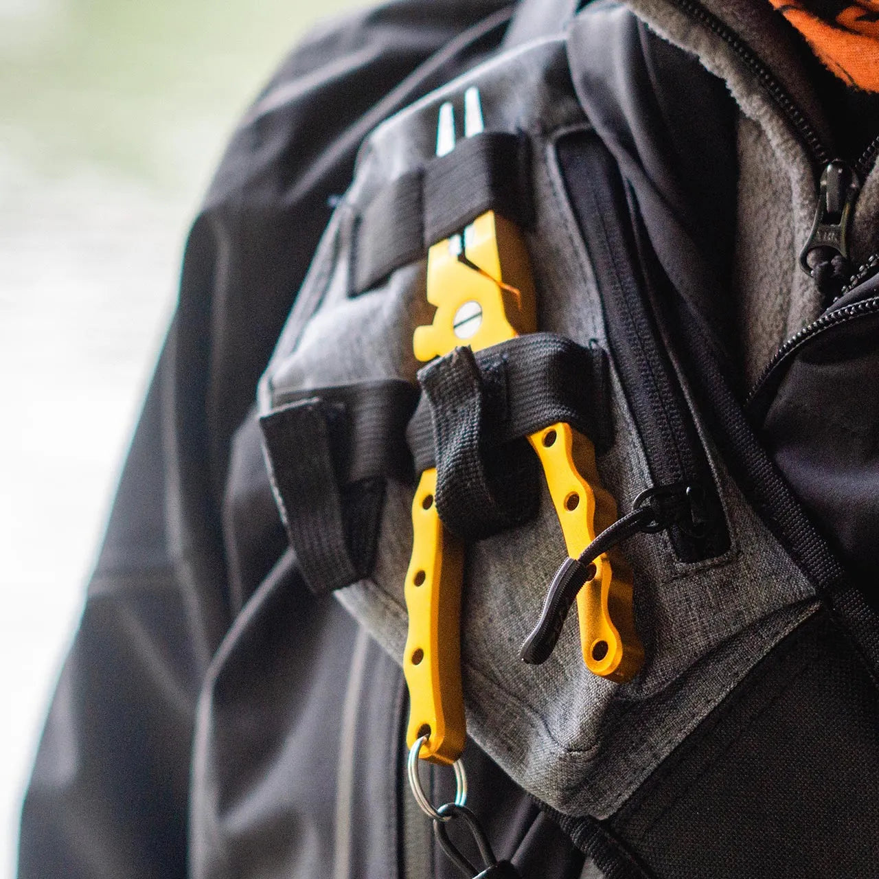 Die Predator Mat kann an einem D-Ring angebracht werden. Für eine Schere und Zange gibt es gesicherte Haltelaschen.