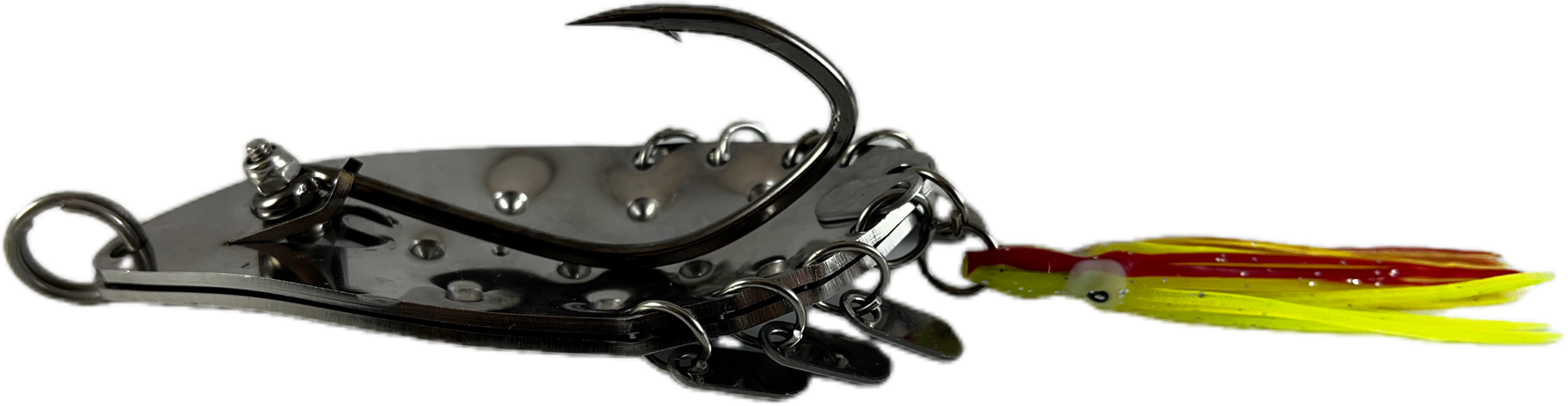 Unser bekannter Rattle Spoon hat ein kleines Facelift bekommen. Durch die zusätzlichen Noppen werden unter Wasser weitere Verwirbelungen erzeugt welche die Fische verrückt machen. Zudem wurde ein Oktopus verbaut um etwas Farbe ins Spiel bringen zu können und den Blinker noch größer erscheinen zu lassen.
